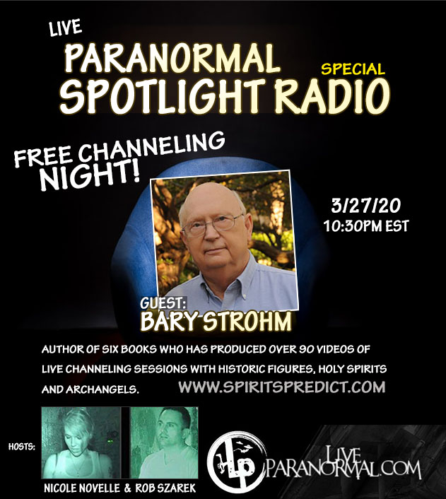 Live Paranormal Spotlight Radio hosted by Rob Szarek & Niki Paraunnormal welcome Guest: Barry Strohm, Friday 3/27/20 10:30pm est for a very Special “Free Channeling Night”